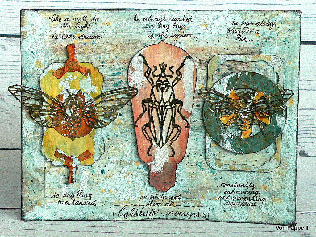 I hope you like it! I definitely had great fun improvising and up cycling packaging materials to turn them into a piece of steampunk mixed media art.